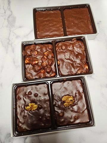 Chocolate Fudge, Chocolate Walnut Fudge and Rocky Road (walnuts and marshmallow) Fudge *Availability can vary*