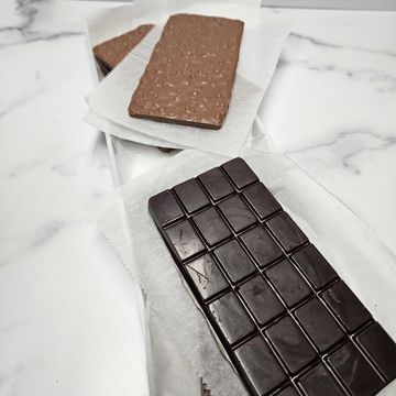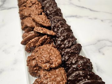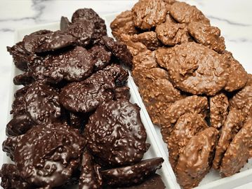 Rice Krispy pieces mixed in Chocolate. Available in Milk or Dark