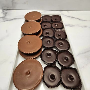 2oz Milk Peanut Butter Cup, Small Dark Peanut Butter Cup
