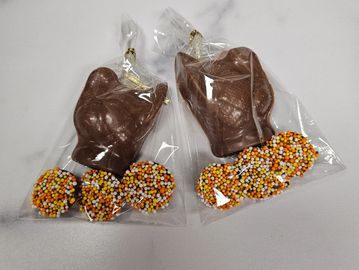 Small solid turkey and fall non-pareils. Available in Milk, Dark or White Chocolate